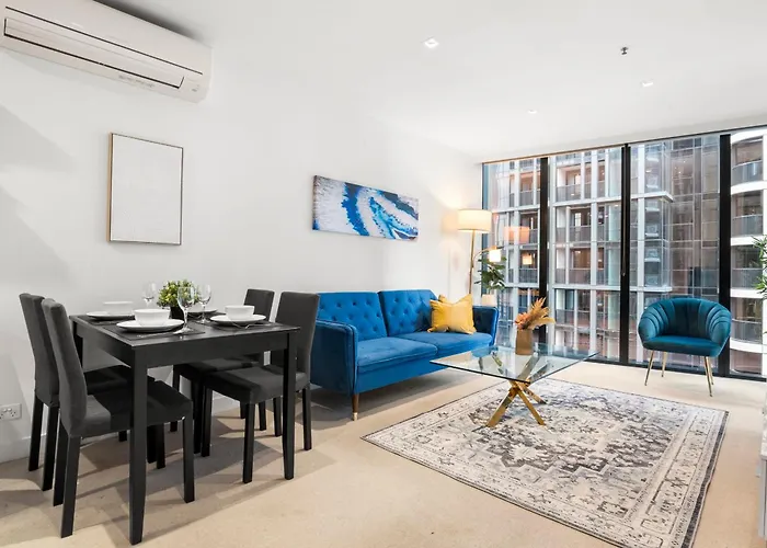 Situé dans la localité de "central des affaires de Melbourne", Blue Haven At Marvel Stadium - Rooftop Pool & Free Parking propose une piscine extérieure pour garantir un séjour inoubliable. La Tour Euréka se trouve à 25 minutes de marche, tandis que la Salle de concert Festival Hall est adjacent au domicile de 70 m².